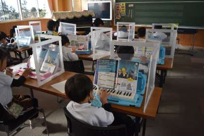 曲の鑑賞をしたり、鍵盤ハーモニカの練習をしたりしていました。