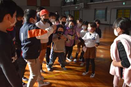 体育委員会の主催でサンタイムに、体育館でじゃんけん列車を行いました。