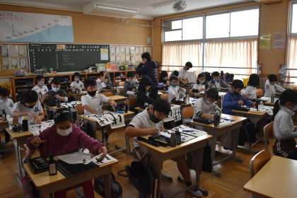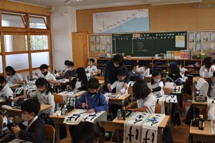 書写ボランテアさんを講師に迎え、書き初めの練習をしました。