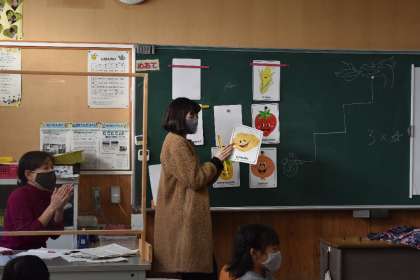 ヘイリー先生と一緒にフルーツの名前の学習です。