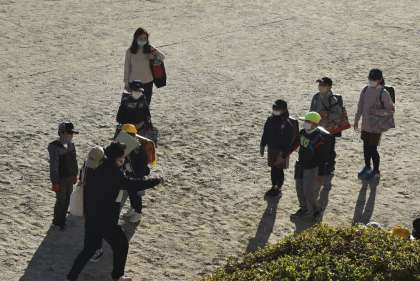 1列で、余分なおしゃべりをしないで、安全に注意しながら登下校しましょう。
