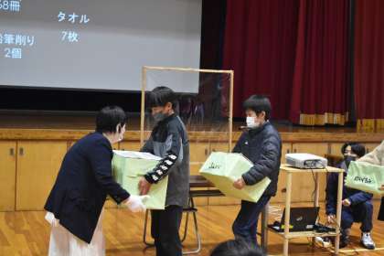 6年生がマザーテレサ隊まごころ贈呈式を行いました。