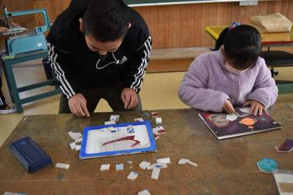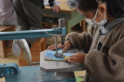 糸ノコで切った材料を並べて、仕上がりをチェックです。