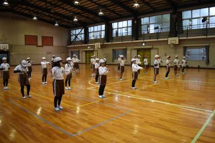 川瀬先生が手本を見せて、正しいフォームを学習していました。