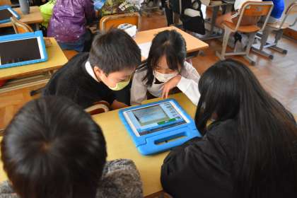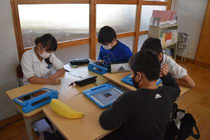 タブレットPCを活用して、考えをまとめたり、共有したりしながら話し合いを行いました。