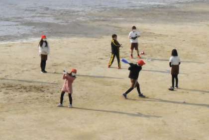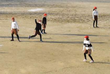寒い朝でしたが、運動場で体育を行っていました。