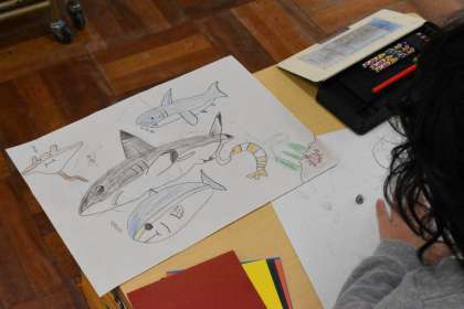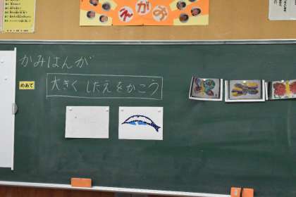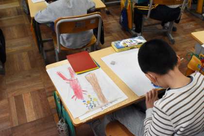 できた子から、版になる台紙に絵を書き写していました。