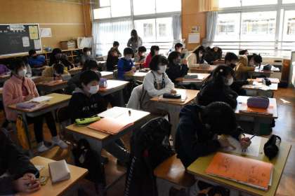 聞き取りテストの練習に取り組んでいました。