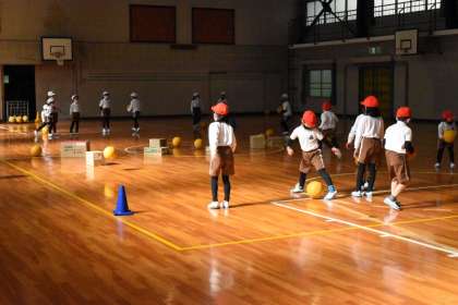 ボールを蹴って、的に当てるゲームです。