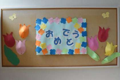 もうすぐ卒業式です。 各階の掲示板が、おめでとうの掲示でいっぱいになりました。