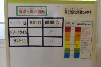 運動場では、36度になり、屋外の活動を中止にしました。