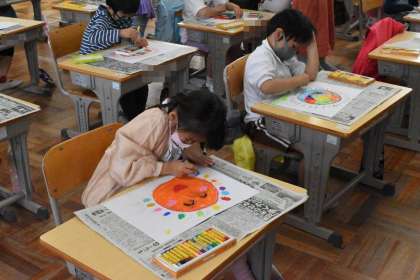 それぞれ、思い思いのおひさまを元気よく描くことができました。
