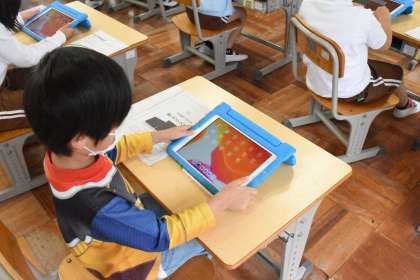 学習用タブレットの使い方を学びました。