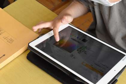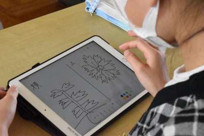 横から見た絵、上から見た絵を学習用タブレットのお絵かき機能を活用して予想の絵を書いていました。