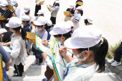 こどもたちは、青ちゃん先生の説明を聞きながら熱心んメモを取っていました。