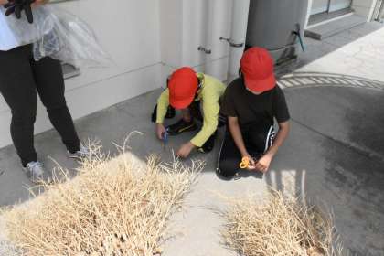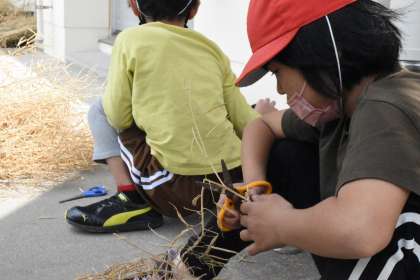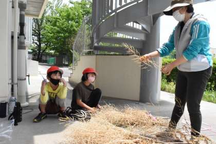 しっかりと乾燥させたナノハナから、種を取っていました。