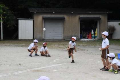 今日は、全校でボール投げに取り組みます。1時間目は2年生です。