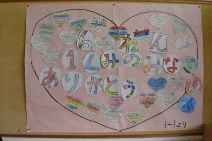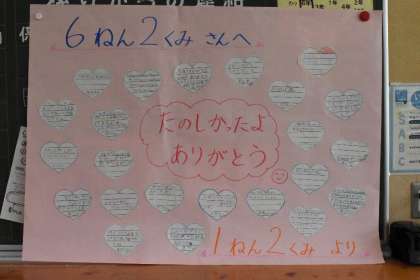 先日行われた1年生を迎える会nお礼のメッセージが、1年生から6年生に届けられました。可愛いメッセージがいっぱいです。