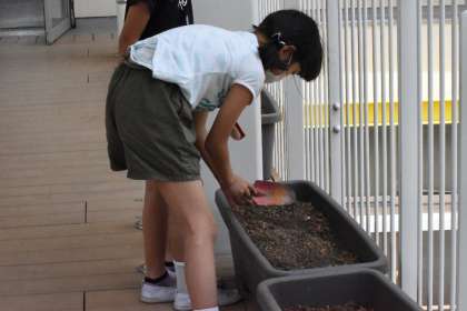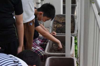 ツルレイシの種をまいていました。
