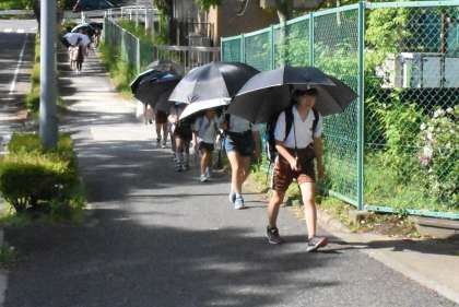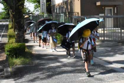 今日から日傘をさしての登下校を開始しました。