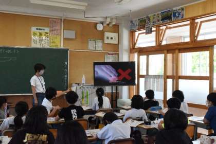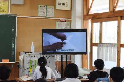 箸の使い方、包丁の使い方を動画を見ながら学習しました。