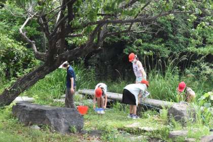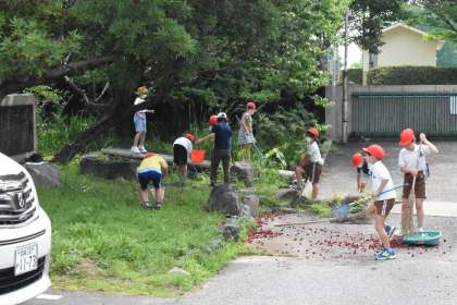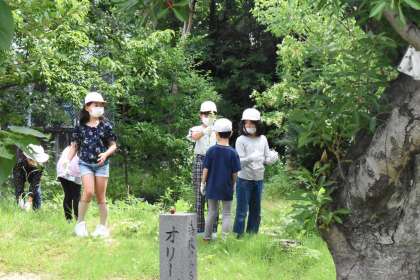 生き物調査に向けて、ビオトープ付近の生き物調査を取り組みました。