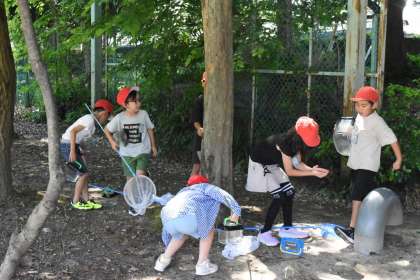 朝から校庭に虫とりにでかけました。