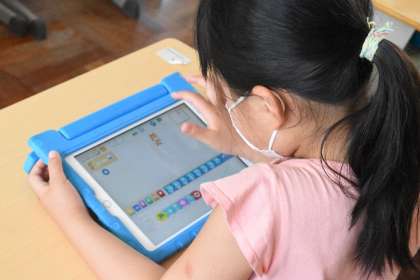ICT支援員の梅谷さんにサポートしていただきながら、スクラッチに挑戦しました。