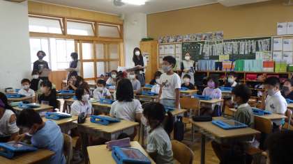 学習用タブレットのポジショニング機能を使い、それぞれの立場を明確にします。