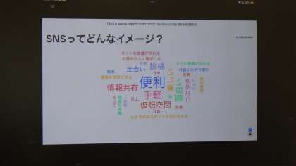 SNSについてのイメージを学習用タブレットを活用して、メンチメーターで確認しました。