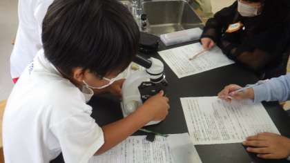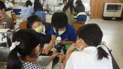 みんなで協力して、顕微鏡の使い方を学習していました。