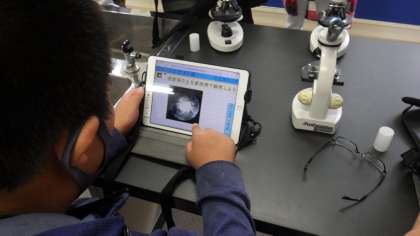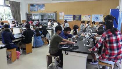 学習用タブレットで、顕微鏡写真を撮っていました。
