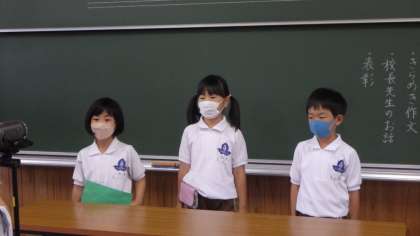 1年生は、3名の子が代表として、前期に1番がんばったこと、後期にがんばりたいことを発表しました。続いて、3年生の代表者は、前期にががんばったことから、あきらめないことの大切さを学んだことを発表しました。
