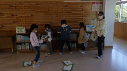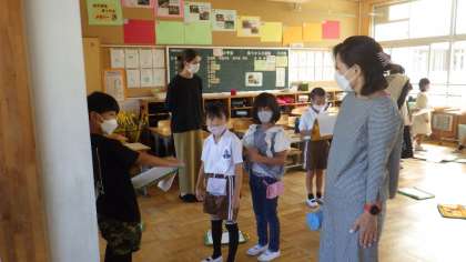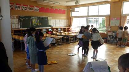 「町たんけん」の学習です。班ごとに分かれて、見学の練習をしていました。