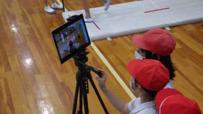 タブレットの追っかけ再生の機能を活用して、自分のフォームを確認します。