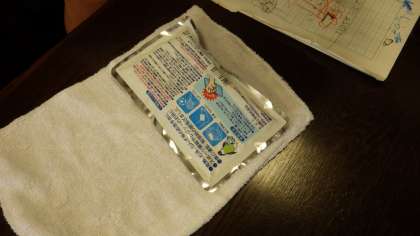 部屋の空気中に水蒸気があるのか、確かめていました。