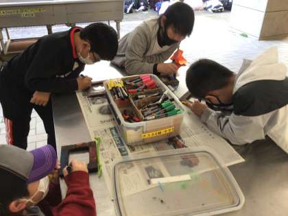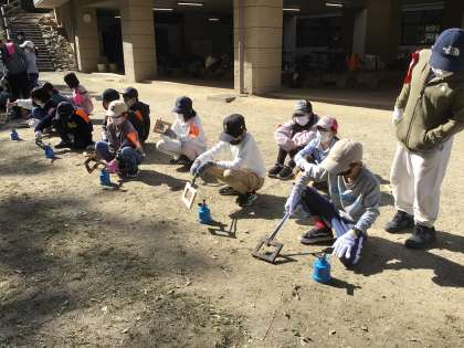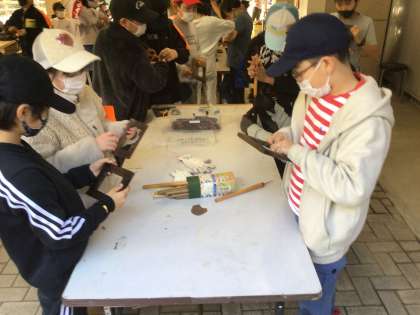 バーナーで杉板を焼いて、紐をつけて、あとはポスカで仕上げます。