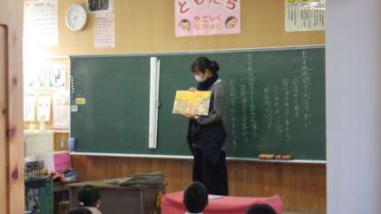 今日は読み語りの日です。 4・5組と1〜3年生が対象です。