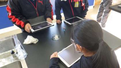 学習用タブレットを活用して、プレゼンテーション、実験の結果の記録をしていました。