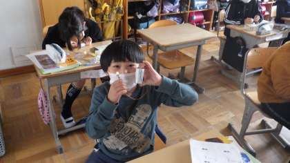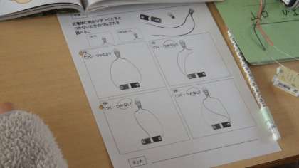 乾電池を豆電球を使って、どうんなときに電球が光るのか実験で確かめていました。