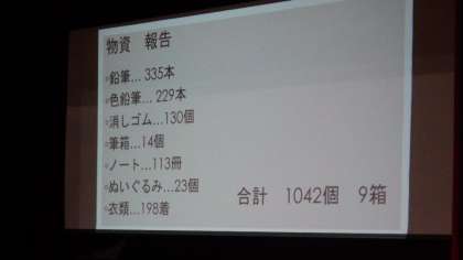 集まった支援物資を、IVGの久野さんに手渡しました。