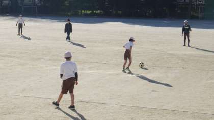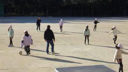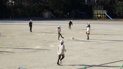 寒い中でも、3年生が運動場で体育の授業を行っていました。
