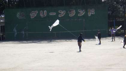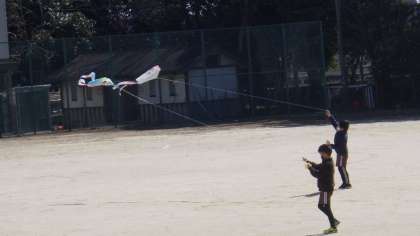 冷たい風をうけて、たこあげをしていました。