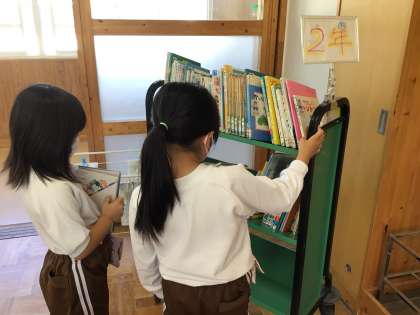2年生は登校すると、すぐ朝の準備をして、本を読んでいました。 さすがですね!