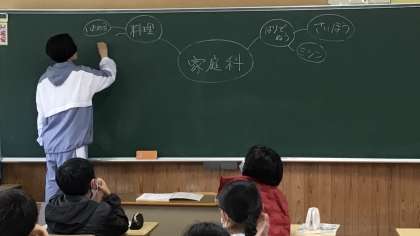 「家庭科と言えば?」の問いかけにどんどん手が挙がります。