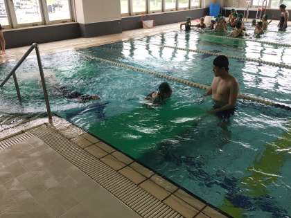 楽しそうに輪っかをくぐったり、先生のかけ声に合わせて蹴伸びをしたりして、どんどん水に慣れていきました。