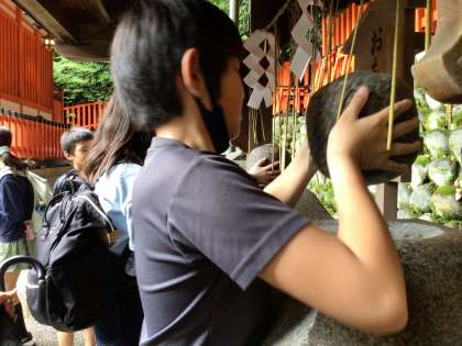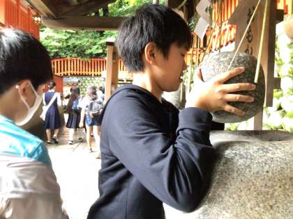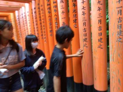 伏見稲荷で晴れてきました。 外国からの観光客の方々もいっぱいです。 重軽石にも挑戦。