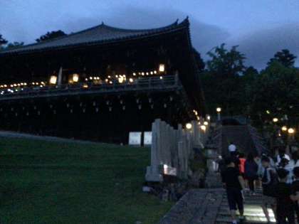 美しい夕暮れの中、、二月堂へ出発。 3枚目 右下に2組、上に1組がいます。