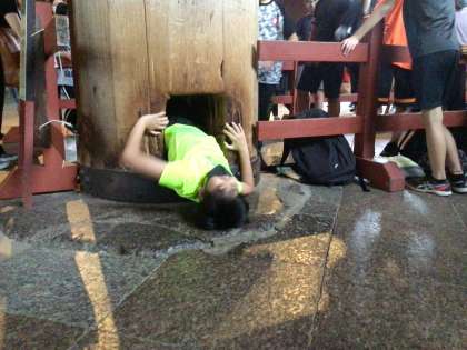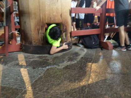鼻の穴の大きさと言われる、柱の穴くぐりができました。