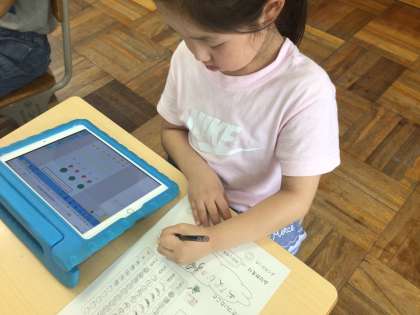 1年生も学習用タブレットを適切に使いながら、授業ができるようになりました。